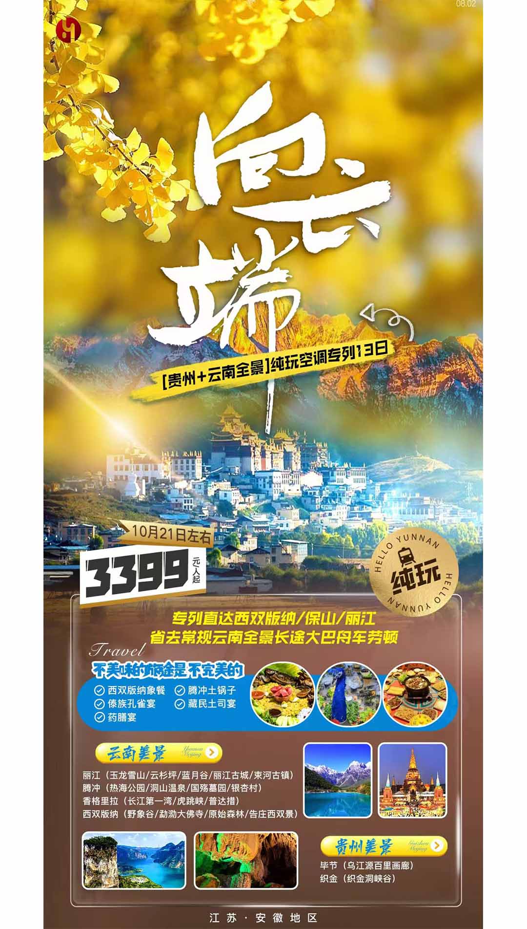 HY241021【向云端】貴州+云南全景 純玩空調(diào)專列13日游